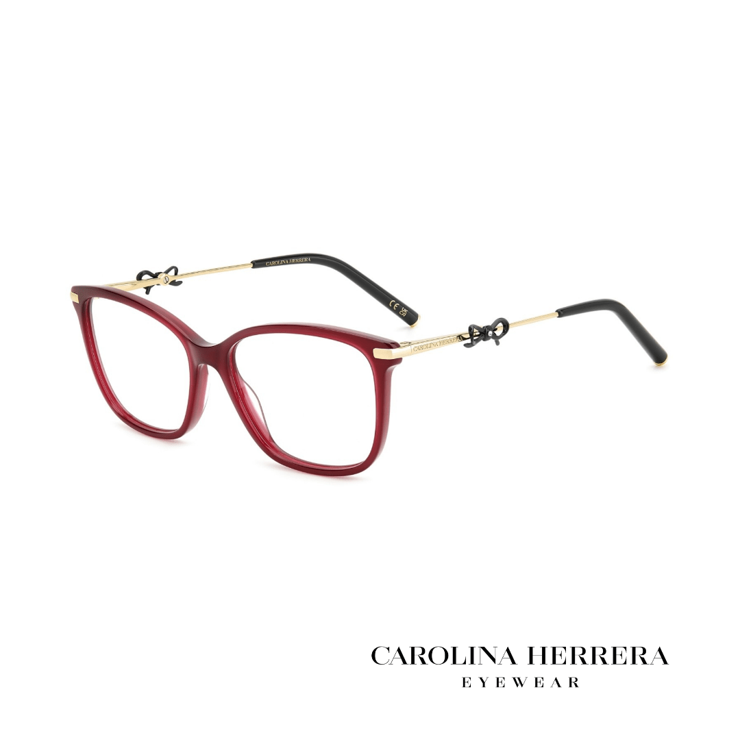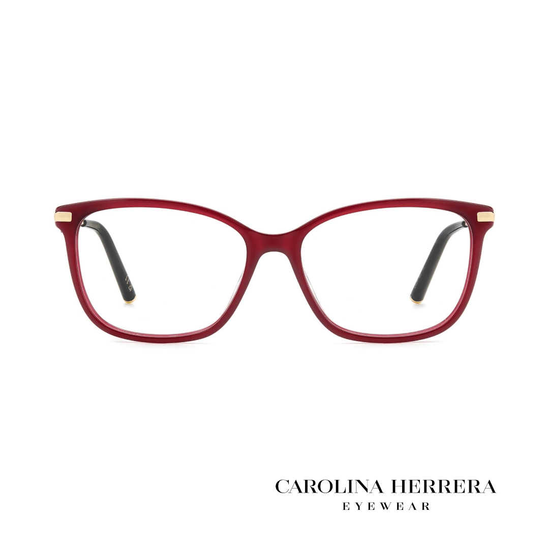 Descubre el encanto y estilo de los armazones  CAROLINA HERRERA. Su forma cat eye en color tinto y dorado te brindará un look femenino y sofisticado. Fabricados en acetato, estos lentes son perfectos para resaltar tu personalidad.