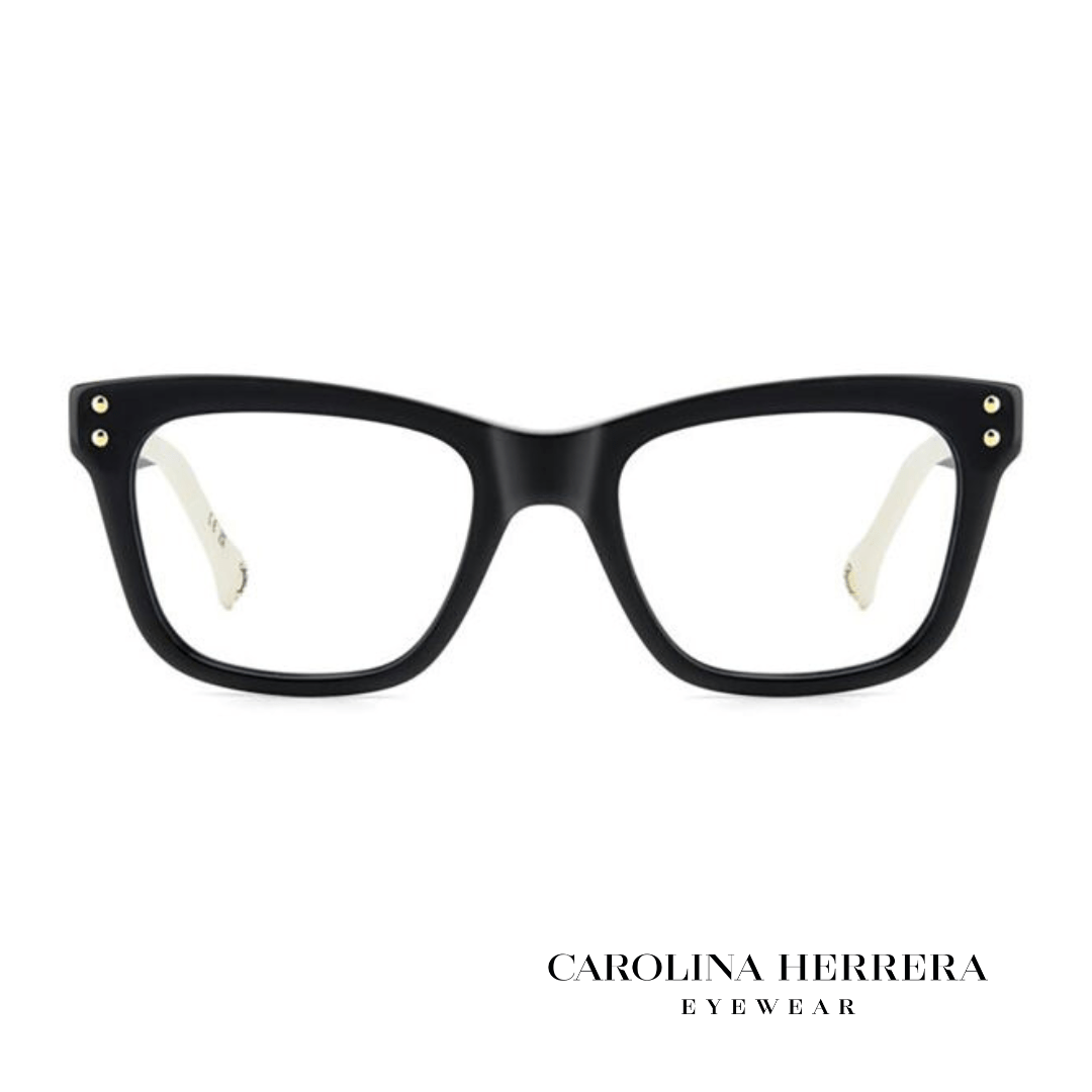 Armazón oftálmico Carolina Herrera para dama, diseño rectangular en color negro. Armazón completo de acetato, elegante y versátil, ideal para un look femenino moderno y sofisticado.