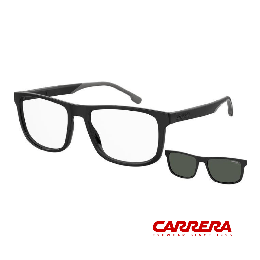 + Free ShippingGafas oftálmicas Carrera para hombre, armazón completo de acetato en negro con clip-on. Diseño cuadrado que proyecta estilo, elegancia y seguridad en cada mirada.