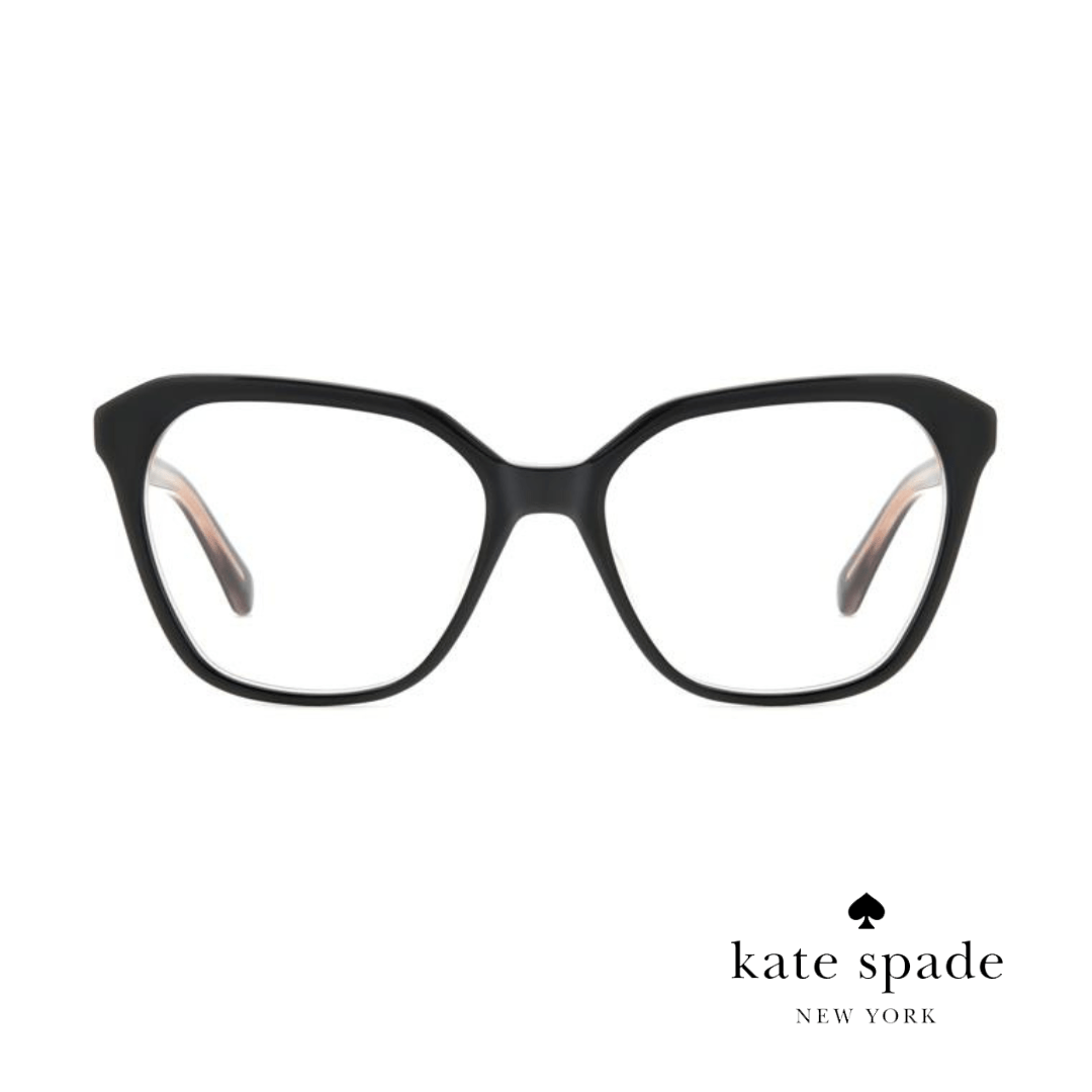 Armazón oftálmico Kate Spade para dama en color negro, con diseño cat eye que aporta carácter, estilo y un toque sofisticado. Su acabado en acetato brinda comodidad y resistencia, ideal para un look femenino moderno y seguro todos los días.