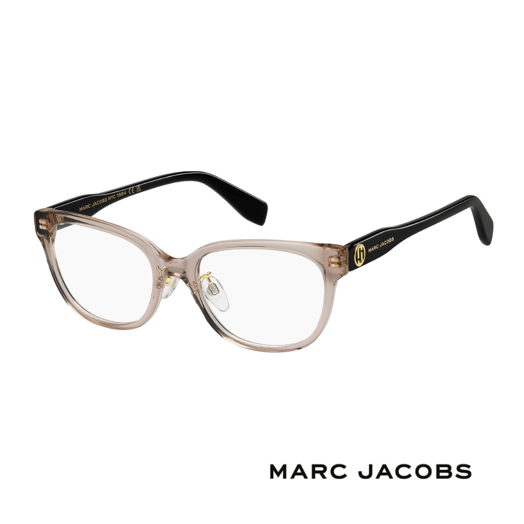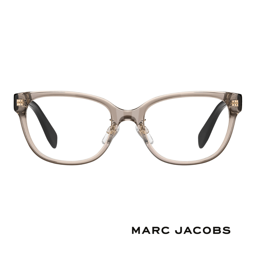 Armazón oftálmico femenino de la marca Marc Jacobs, elaborado en acetato color beige. Presenta una elegante forma cat eye que aporta un estilo sofisticado y moderno. Su estructura de armazón completo brinda mayor resistencia y soporte, ideal para uso diario