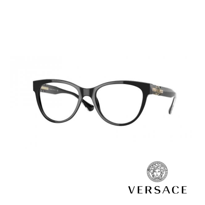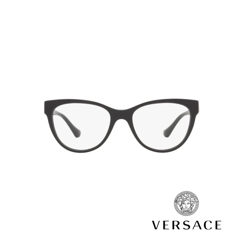 Descubre los fabulosos armazones VERSACE VE_3304, su diseño en forma CAT EYE en color NEGRO te hará lucir un look elegante y moderno en toda ocasión.